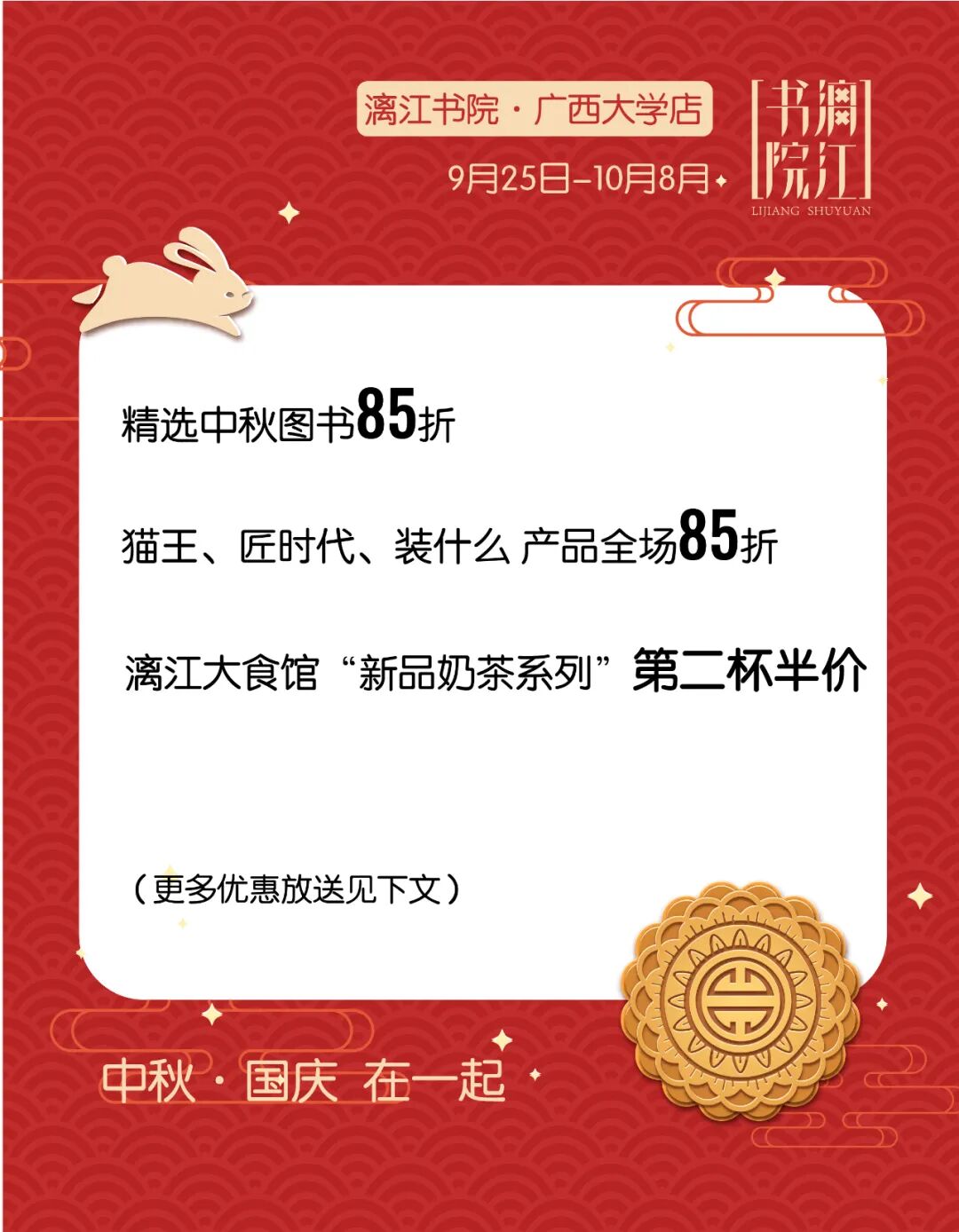 漓江书院双节优惠活动9月25日来了!